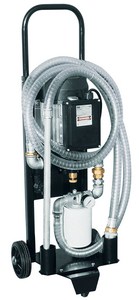 Unidad de filtrado y trasiego. El DEPUROIL es un equipo ideal para descontaminar el aceite de partículas en suspensión. Dotado de bomba volumétrica, con funcionamiento continuo, que aspira el fluido enviándolo a un filtro con cartucho de elevada capacidad de filtración. Manómetro para controlar la obstrucción del filtro. Soporte sobre ruedas. Nivel de ruido inferior a 70 dB. Filtro con cartucho con parte superior intercambiable. Se suministra de serie un cartucho de repuesto.